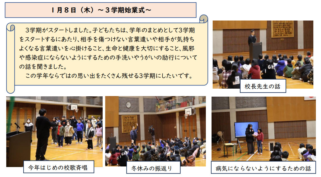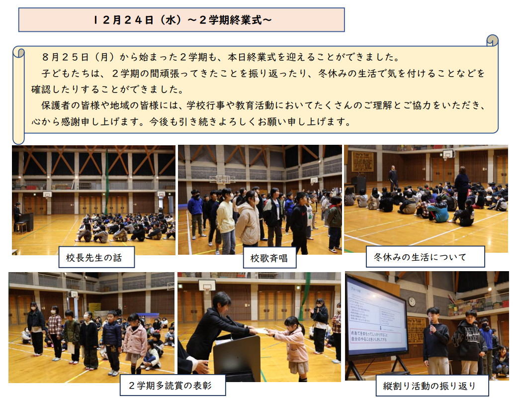 最後になりましたが、1学期間、本校の教育活動にご理解とご協力をいただきました、保護者及び地域の皆様、本当にありがとうございました。2学期も変わらぬご支援をよろしくお願いいたします。