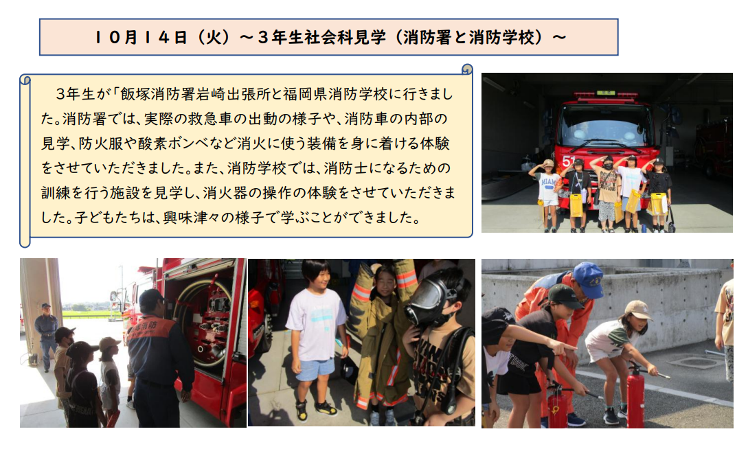 昨日は、PTAの役員会・評議委員会が行われました。参加くださった保護者の皆様ありがとうございました。今日は、3年生の「山田川の学習」についてお伝えします。遠賀川河川