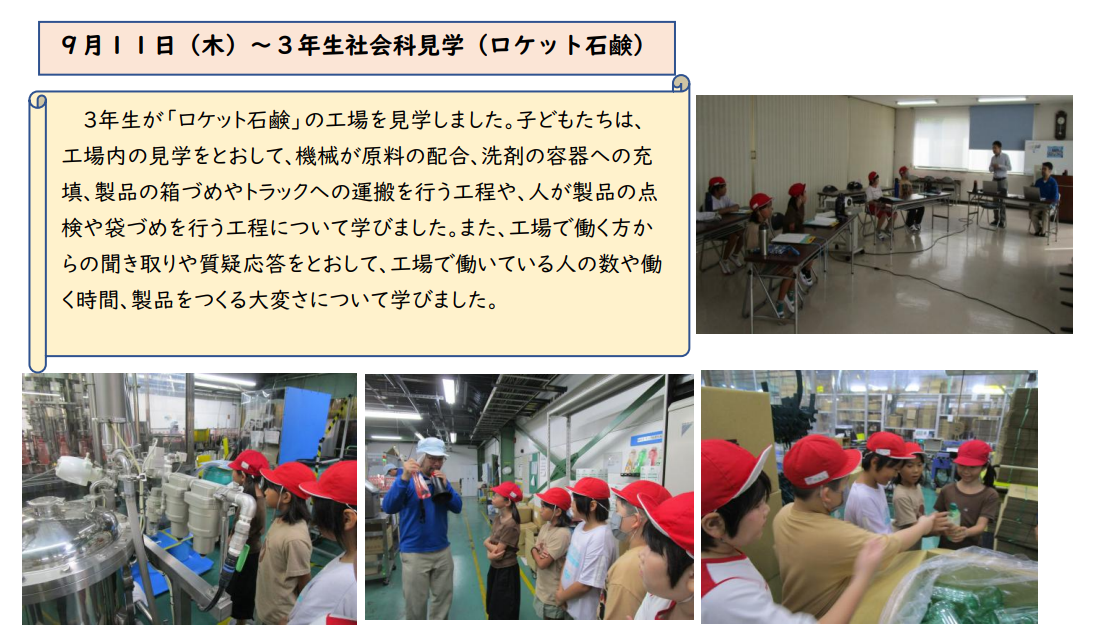 今日は3年生の町探検についてお伝えします。今日訪れたのは、稲築の「ゆめマート」です。日頃は見ることのできないバックステージを見せていただき、子どもたちは目を輝かせていました。ご協力いただきましたお店の皆様ありがとうございました。